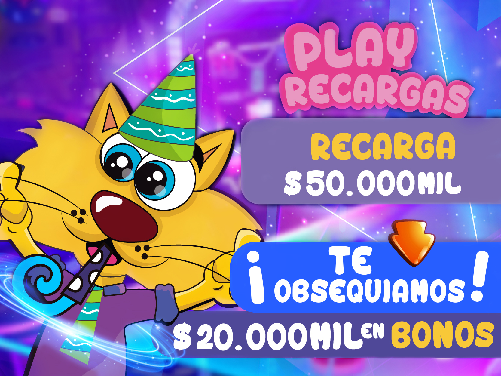 Recarga $50.000 a tu tarjeta y te obsequiamos $20.000 en Bonos. * Los bonos aplican para los juegos con lectores de color azul.